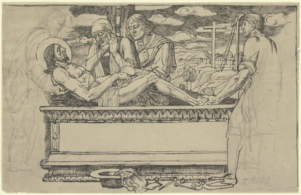 Curator: Looking at this drawing by Leng Mei, dating back to the late 17th or early 18th century during the Qing dynasty, called "Drinking and Dancing Before the Tribal Chief," I’m immediately drawn to its intricate detail, rendered with ink and color on paper. It's quite an insight into the leisure activities of the period. What strikes you most about this scene? Editor: It feels…quietly opulent, doesn't it? Despite the implied "drinking and dancing," there's a subdued quality, almost dreamlike. The color palette is restrained, the lines delicate. It's as if we’re eavesdropping on a private, privileged moment. The material simplicity underscores that. I mean, ink and paper, traditionally humble materials, elevate this intimate portrayal. Curator: Precisely! The choice of materials and the miniature format allow for remarkable detail, capturing the textures of the clothing, the patterns on the cushions, and the various vessels depicted. The production of such an artwork likely involved meticulous labor and skill, reflective of the patronage system prevalent then. It also seems interesting how you used that “dreamlike” quality in the way you speak of that opulence, considering its distance to reality. Editor: Absolutely, labor is an excellent observation. It does beg the question, what does luxury and leisure mean and whose labor allows the creation and experience of art? But I do notice, this reminds me a bit of a stage setting, all very arranged, each person almost frozen in place within their tiny scene, like figurines. The composition subtly underscores a structured hierarchy, doesn't it? Curator: Yes, definitely! And that links back to your earlier comment about privilege. Each element—the meticulously rendered garments, the vessels being offered, the act of subservience visible on the right of the drawing, and the raised platform on which they sit – contributes to the narrative of social standing and power dynamics at play in Qing society, with subtle notes to colonial hierarchy. Editor: Thinking about this piece, there's an enduring charm in this miniature glimpse into a long-vanished world. The artist captures something universal. Curator: I agree, contemplating it with you allows a renewed appreciation for its meticulous execution and rich cultural context.