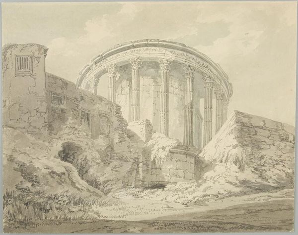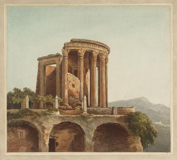 Franz Ludwig Catel painted "The Temple of Concordia by Girgenti," now at the SMK, using oil on paper. The painting's visual power lies in its composition, where the temple is centrally positioned against a sunset, creating a strong focal point. The warm hues of the sky contrast with the temple's darker tones, evoking a sense of solemnity and timelessness. Catel masterfully uses light to define form and texture, accentuating the temple's architectural details while casting the foreground in shadow. This interplay of light and shadow invites us to contemplate the temple's structural integrity. The sky is a semiotic code, representing the passage of time and the enduring presence of classical architecture. The painting explores the Romantic era's fascination with ruins and antiquity, reimagining classical structures not just as historical artifacts but as symbols of cultural memory. It creates a discourse between the past and present. By framing the temple in the fading light, Catel encourages us to reflect on history's layered meanings and its influence on our cultural consciousness.