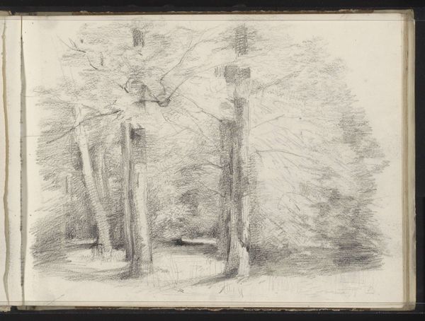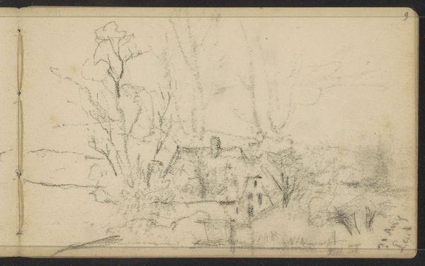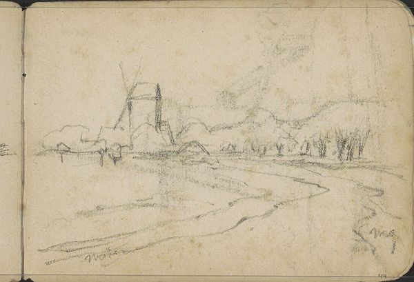 Editor: This is Willem Cornelis Rip's "Houses and a Drawbridge along the Kleiweg near Rotterdam," a pencil drawing from 1876. I find its sketched quality quite captivating. What story can you tell about the making of this image, and maybe what it represents beyond just a scene? Curator: Consider the immediacy afforded by pencil and paper. Rip captured this en plein air, implying a direct encounter with the landscape. He didn't meticulously construct this in a studio, right? This speaks to a growing interest in the everyday experiences of the working class, but through whose lens are we seeing them, and how does *that* material reality—the artist's social standing and mode of production—affect what's depicted? Editor: So, the material reality of the pencil drawing allows for an interpretation tied to immediacy, perhaps of seeing everyday life in a new way… Was the landscape itself, Kleiweg near Rotterdam, particularly important for understanding this artwork? Curator: Absolutely! The means of production– his access to the raw materials for the work–is intrinsically linked to the place depicted. Kleiweg, being near Rotterdam, probably had ongoing infrastructure development and its share of laborers passing by. Rip would’ve made decisions about what aspects to include based on both societal conditions but also the very limitations of working in a ‘street art’ manner at this point in the late 19th Century. Consider how his social standing afforded him the luxury of sketching freely, a freedom not typically afforded to working-class individuals who would've been preoccupied with, you know, actually working. Editor: That's insightful. It reveals an interesting contrast – the sketch capturing working-class subjects through an artist's privileged perspective. It’s almost like the image, raw and immediate, holds this inherent tension. I never really thought about it this way, about who is free to capture an image and how this freedom changes their art’s meaning. Curator: Precisely. Next time you see a landscape sketch, think about who is rendering and who benefits from it, economically.