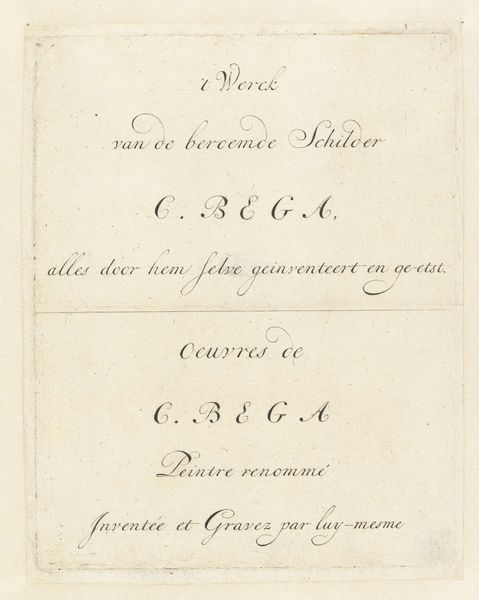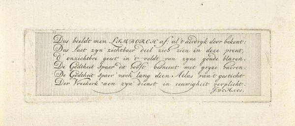 This is a title page for a series of views of Rosendael Castle, made anonymously. Though undated, it’s likely from the 18th century. Printed on paper using etching techniques, this artwork exemplifies the craft of printmaking. Notice the fine lines and delicate details achieved through the careful manipulation of metal plates and acid baths. The precise lettering, a key element of the composition, highlights the skilled artistry involved. The text tells us that this image is dedicated to Joan Baron van Arnhem, a significant figure in local governance. The print thus functioned as a means of commemorating social status. Printmaking, although a mechanical medium, allowed for the wider distribution of images. This title page blurs the boundaries between fine art and craft. It reminds us of the intricate processes and social contexts that shape our understanding of visual culture, highlighting how even seemingly utilitarian objects can possess artistic merit.