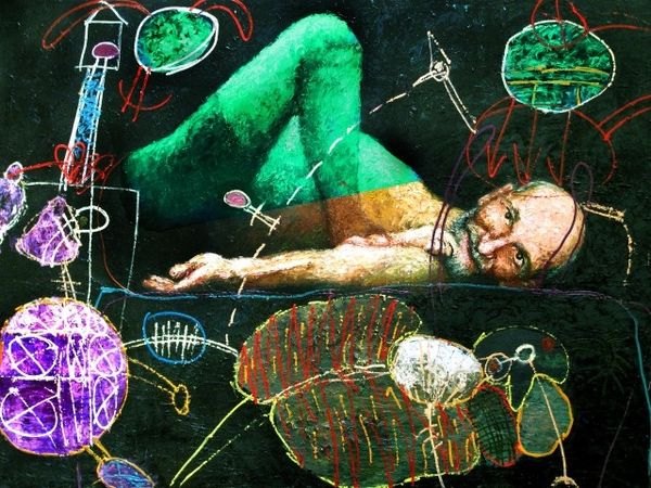 The Wounded Kirasser Leaving the Field of Battle was painted by Alexander Roitburd. Looking at it, I’m struck by the feeling that art-making is a process of excavation. The painting feels like it's uncovering layers, revealing a history of gestures and decisions. The paint here is thick, almost sculptural in places, and then scraped back, leaving ghostly traces. Note the way the artist renders the wounded man; a figure overwhelmed with symbolic forms. There’s something about the juxtaposition of the highly rendered face and loosely described body that grabs my attention. It feels as though the artist is trying to show us the inner turmoil of the subject. There is something of Francis Bacon in the way the picture plane is pushed and pulled, but also something playful about the way the artist uses line in a similar way to Basquiat. It feels like art is just an ongoing conversation. It is about embracing ambiguity and accepting that there isn't one correct meaning.