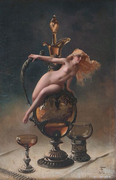 Editor: Here we have Roberto Ferri’s 2017 oil painting, "Il Sogno Di Lucifero," or "Lucifer's Dream." It's striking how he’s rendered the figures with such classical precision, yet the scene itself feels like a bizarre, unsettling dream. The central figure with the halo almost seems to be controlling the others. How do you interpret this work? Curator: For me, this painting speaks volumes about the act of creation and control within specific economic systems. The classical realism employed, the very labor involved in producing such a detailed oil painting today, contrasts starkly with the surreal subject matter. We see the artist using historical techniques, like underpainting, potentially for the purposes of erotic art, but this act itself is commodified within today’s market. The "dream" of Lucifer perhaps then signifies the dream of unattainable production and creation that only capital can dictate, almost satirically using religious themes. How do we reconcile this blending of high art and what some may traditionally view as lower forms, like fantasy art and erotic-art, particularly considering the labor and resources poured into it? Editor: That's a fascinating perspective. I hadn't considered the commodity aspect so directly. I was more focused on the narrative and symbolic elements within the painting itself. So you are suggesting that Ferri's labor is essentially a commodity regardless of subject matter? Curator: Precisely! The material reality is that oil paints and canvas cost money and demand labour, the means to achieve surrealist dreams. Ferri then sells a commodity within a hierarchical art-market structure. We should consider the role the art world plays in either valorizing the dream of history-painting by uplifting “high art,” or reducing all of it to simple monetary value and luxury consumption through commodity. Editor: So the tension between the historical references and contemporary surrealist style underscores this? It really makes me think about what labor constitutes 'art', as you said. Curator: Precisely. By looking at the process and materials, and the position this piece occupies within the current art market, it complicates the simple consumption of "beauty". Hopefully this analysis makes you reconsider the surface appeal of this work by examining the circumstances behind its creation!