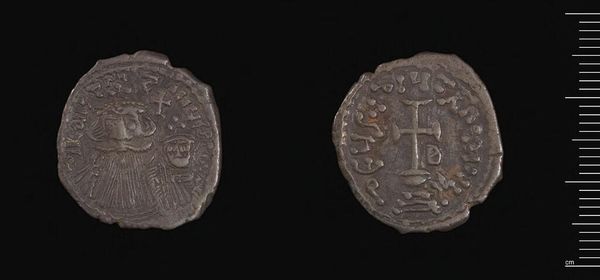 Editor: Here we have a coin, attributed to Leo III. It's aged, worn smooth in places. The portrait is stylized, almost cartoonish. What can you tell me about its significance? Curator: This coin offers a glimpse into the Byzantine Empire’s sociopolitical landscape, particularly the iconoclasm controversy. Images of Leo III are on the coin. Consider how the representation of power and authority is being codified through imagery at this time. What do you see in this image that might reflect cultural anxieties? Editor: I see a ruler, presented very formally. A bit intimidating. Curator: Exactly. The coin served as propaganda, reinforcing Leo III’s authority. Now, think about the act of distributing these coins. How might they function in shaping public opinion and solidifying power structures? Editor: I guess it's a reminder that even something small can carry a big message. Curator: Precisely! It underscores how art and politics are intertwined.
