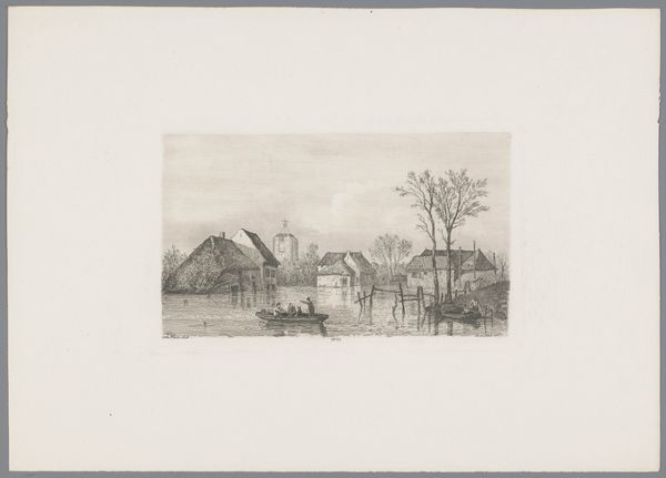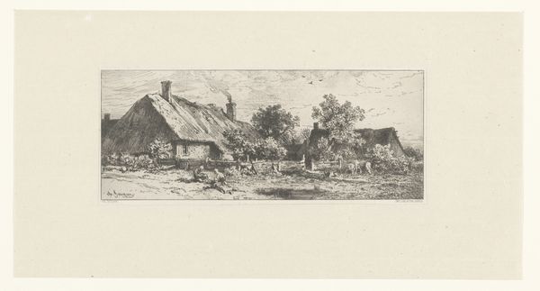 Auguste Danse created this etching of a village scene with thatched-roof buildings in 1859. The thatched roofs of these humble dwellings are the most striking element, their texture and form embodying a simple connection to nature. Thatched roofs evoke primal images of shelter and community. We can find similar structures throughout history, from ancient Celtic roundhouses to medieval peasant homes, each bearing the mark of human adaptation to the environment. Think of how these roofs represent not merely shelter, but a direct link to the land, a protective embrace against the elements. In an era of rapid industrialization, Danse seems to be making a deliberate statement about the enduring value of rural life and its structures, resonating with a collective memory of simpler times. It's a visual echo that whispers across centuries, reminding us of our ongoing dialogue with nature.