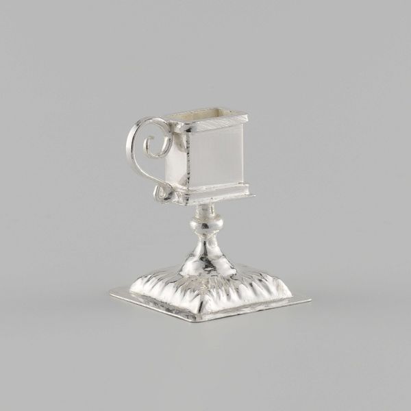 This is Willem van Strant’s ‘Girl in a walker’, made sometime between the late 17th and early 18th century from silver. The creation of this miniature began with the selection of raw silver. The silversmith would have melted it down, formed it into sheets and wires, and then used a range of tools – hammers, dies, and files – to shape the metal into the intricate components we see here. The wheels, frame, and figure of the girl were all crafted separately before being joined together, likely using soldering techniques, demanding immense skill and precision. The reflective, cool nature of the silver lends a precious quality to the humble subject of a child’s walker. Such a detailed representation suggests the importance of early childhood, but also the wealth required to commission such an object. The labor involved speaks to the hierarchies of the period, where skilled artisans served a privileged class. Appreciating these aspects gives us a richer understanding, challenging the traditional separation of craft from art.