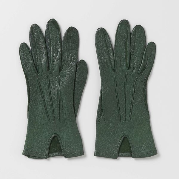 These gloves, in grey chamois leather, were made by M. Laimböck at an unknown date. The material and colour of these gloves evoke a sense of utilitarianism, almost like they’re made for working with machinery or handling delicate objects. I find myself wondering about the wearer and the specific actions these gloves were made for. The surface of the leather, marked with subtle imperfections and slight discolourations, tells a story of use and wear. It’s incredible how the texture invites you to imagine the sensation of the leather against your skin. Notice the stitching along the fingers, these lines are almost like the lines in a drawing, defining the form with subtle precision. The colour is muted, almost blending into the background. This makes the gloves appear less as objects and more like extensions of the hand they were made to cover. Think about how Jasper Johns takes ordinary objects like flags and beer cans, and transforms them into something profound through his artmaking. These gloves, similarly, transcend their everyday function through their quiet, unassuming presence. Like art, they make you look closer.