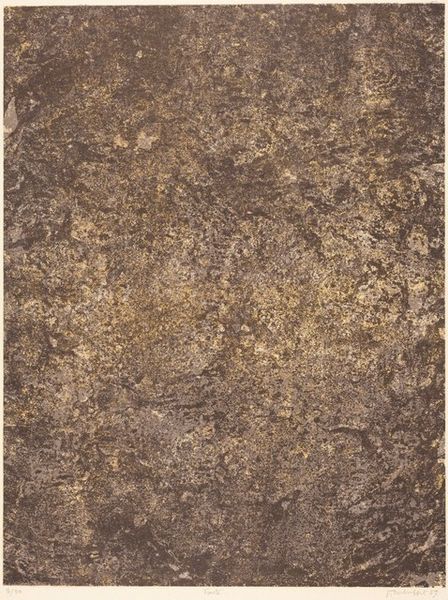 Jean Dubuffet made this print, 'Champ muet,' in 1958. There's this overall sense of texture, a field of marks that, for me, speaks to the raw, unfiltered energy that Dubuffet was all about. Up close, you can see how the surface is built from tiny specks and daubs of color – browns, yellows, and grays. It’s like he’s trying to get down to the nitty-gritty of the material world, embracing the dirt and grit. The way he layers these colors creates a kind of shimmering effect, as if the surface is alive and breathing. There is a cluster of marks towards the lower right of the piece which seem to interrupt the overall field of marks. Dubuffet’s work often reminds me of Paul Klee, in that both artists were interested in the art of children, embracing the primitive as a way to bypass the conventions of high art. It's a reminder that art is always in conversation with itself, each artist building on what came before, pushing things in new directions. It’s not about having all the answers, but about staying curious and open to possibility.