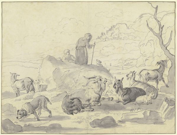Johann Heinrich Roos created this drawing of goats, sheep, cows, and horses amidst an Italian mountain landscape with ruins. The inclusion of livestock alongside classical ruins speaks to a cultural memory deeply embedded in the European psyche. Consider the cow, standing prominently; throughout history, it has been venerated and sacrificed, appearing in ancient Egyptian, Greek, and Roman art as symbols of fertility and power. Even today, we find echoes of this reverence, though often obscured, in our modern agricultural practices. Roos uses the cow to represent abundance and pastoral harmony, set against a backdrop of decaying grandeur. Observe also how the ruins themselves—fragments of a once-great civilization—evoke a sense of nostalgia and reflection on the transience of human achievement. This interplay between the natural world and the remnants of human ambition invites us to contemplate the cyclical nature of history, where civilizations rise, fall, and leave behind fragmented legacies. The emotional power in such scenery stirs our collective subconscious, reminding us of humanity’s place in the grand tapestry of time.