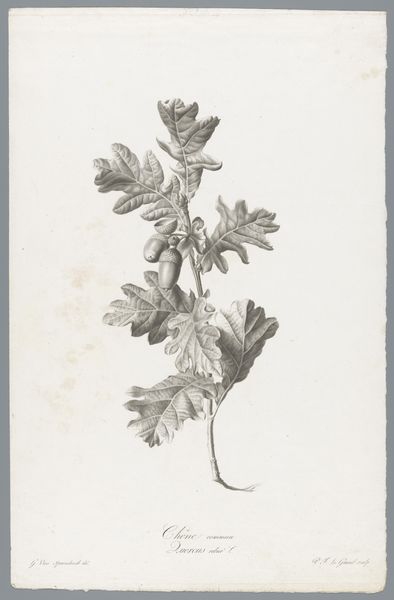 Curator: This is Martin Mower's rendering of an oak leaf, rendered in watercolor on paper. It's striking, isn't it? Editor: It evokes a sense of melancholy, a kind of autumnal elegy. The isolated leaf against the stark white ground speaks of solitude and decay. Curator: Indeed, the artist masterfully uses the medium to capture the delicate venation and subtle gradations of color, focusing on form. Editor: I wonder, though, about the context of such a piece. Was this part of a larger botanical study, perhaps reflecting a colonial impulse to classify and control nature? Curator: That's certainly a valid interpretation. However, I'm also drawn to the sheer technical skill on display; the artist's rendering is quite beautiful. Editor: Yes, but beauty devoid of context can be a form of erasure. Whose story is being told, and whose is being left out? Curator: An interesting point. It is something to consider while appreciating Mower's skill and artistry. Editor: Ultimately, perhaps we should acknowledge how this piece reflects our complex relationship with the natural world.