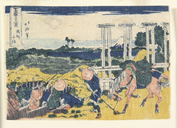 This print, *Ejiri in Suruga Province*, was created by Hokumyō in the 1830s using woodblock printing. At first glance, the dominant symbol is the sudden gust of wind scattering papers across the landscape. These flying papers are not merely documents. They are potent symbols of disruption and the transient nature of life. Consider how similar symbols appear across cultures: the scattering leaves in classical allegories of autumn, or the whirlwind in ancient mythologies, often signifying chaos or divine intervention. The papers here echo the same psychological resonance, engaging our deep-seated fears of disorder. Look at the way these papers have evolved over time. In earlier periods, such a scene might have represented punishment or divine wrath; here, in Hokumyō’s rendering, the emotional impact is more ambivalent. We are left to ponder the fragility of our plans and the ever-present possibility of upheaval. This is the enduring power of symbols—how they resurface, evolve, and take on new meanings across time.