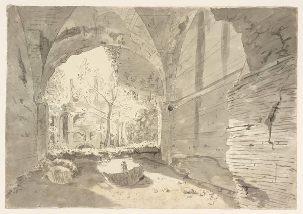 This drawing of antique ruins was made with pen and brown ink, and brown wash, by an anonymous artist. It’s a relatively quick technique, using lines and washes to create a sense of depth and decay. The character of the ink contributes significantly to the drawing’s effect. The artist would have worked with a quill, probably made from a bird’s feather. The controlled line work captures the ruined architecture, while the brown wash, diluted in water, softly models the forms and creates shadow. The absorbent paper allows the ink to bleed slightly, enhancing the sense of age and disintegration. We might think about drawing as a relatively immediate, personal medium. But the paper and ink also have histories. Paper manufacture depended on the availability of raw materials like linen rags, and the labor involved in pulping and processing them. Similarly, the formulation of ink would involve recipes passed down through generations. So even in this seemingly straightforward sketch, we can appreciate the complex relationship between artistic expression and the material world.