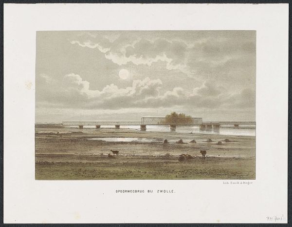 This print of the Spoorbrug bij Westervoort, or railway bridge at Westervoort, was made in 1846 by an anonymous artist. It’s a lithograph, a relatively new technology at the time, which allowed for detailed images to be reproduced more easily than traditional engraving. Look at the delicate lines and subtle gradations of color. These were achieved by drawing on a flat stone with a greasy crayon, then treating the stone so that ink would adhere only to the drawn areas. The print captures the bridge's solid presence and reflects the growing industrialization of the Netherlands. The bridge itself is a marvel of engineering, constructed from iron and stone, materials of the industrial revolution. Its construction would have required the labor of many skilled workers, from stone masons and ironworkers to engineers and carpenters. The print, with its precise lines and meticulous detail, celebrates human ingenuity and the transformative power of industry. It reminds us that art and technology are not separate spheres, but intertwined expressions of human creativity and ambition.