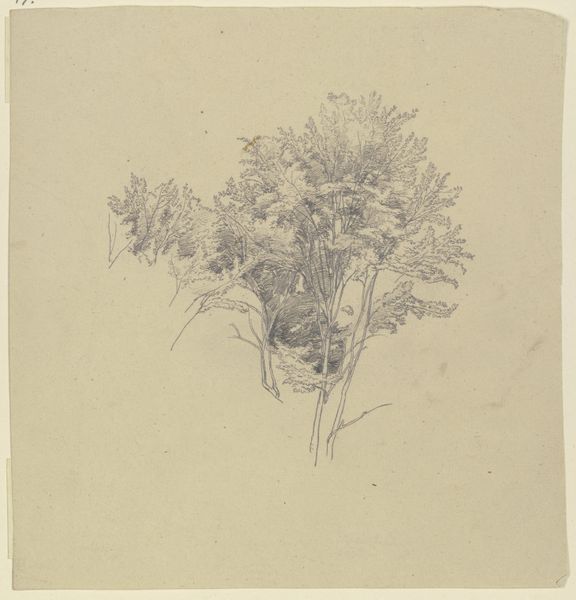 George Richmond made this drawing of a burdock plant with graphite on grey paper. The composition presents the burdock as a dense cluster of forms, occupying the lower center of the sheet. Richmond’s application of graphite emphasizes the plant's tactile qualities. The leaves appear almost sculptural due to the interplay of light and shadow. The artist pays close attention to the venation and surface texture of the leaves, giving each one a distinct presence. Note that there is an implicit understanding of the plant's structure. Richmond captures the plant's essence. The precision in rendering each leaf invites us to consider the burdock not merely as a botanical specimen but as a study in form and texture, highlighting the interplay between naturalism and abstraction. The drawing reflects the broader artistic and philosophical interests of its time.