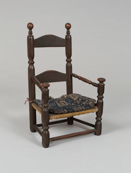 Curator: What strikes you first about this side chair? To me, it seems a bold assertion of authority and control. Editor: Definitely regal! My gut reaction is something almost Shakespearean, all wood and darkened leather, like a prop waiting for a performance of King Lear. It feels ancient and important, even though it's just... a chair. Curator: It's certainly meant to project power. Dating from around 1848, this chair exemplifies the work of Augustus Welby Northmore Pugin, a central figure in the Gothic Revival movement. He embraced medieval design principles, seeing them as morally and aesthetically superior to classical styles. The Art Institute of Chicago holds this striking example of his craftsmanship. Editor: Gothic Revival, huh? That makes sense, all those pointed arches echoing in the leg supports. I like how solid and imposing the design is. But let's be real, would it be comfortable? I'm not seeing any give there! Curator: Comfort wasn't necessarily the primary concern. Pugin was invested in a symbolic and ideological project. The Middle Ages, for him, represented a society founded on strong religious faith and social order. He sought to embody these virtues through the very structure and ornamentation of objects. Editor: So it’s less about a comfy place to park your bum and more about… architectural moralizing? Still, those carved details! The tiny lion heads at the top…it's amazing what they could do by hand, a lost kind of craftsmanship. I wonder about the original owner of this chair and whether their posterior appreciated Pugin’s noble intentions. Curator: Given his clientele, and Pugin's beliefs, it would likely have been a male figure. He and others like him would not have accepted or supported anyone or anything less. More seriously though, understanding design is intrinsically tied to the people for whom these pieces were made. Gender, race, and the elite structures of the period, are very relevant to understanding artworks of this kind. The past has so much to say about our current culture! Editor: A good reminder! Makes me think about how objects carry so much unspoken history. Alright, now I see that a chair can be a loaded statement about more than just sitting. Thanks, that gave me a whole new angle to consider the history, and even meaning, behind seemingly ordinary things. Curator: Glad to shift your perspective! Indeed, material objects can teach us valuable lessons.