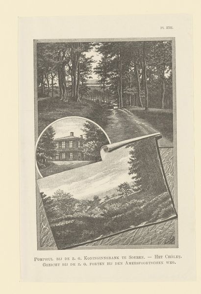 Curator: This piece, created between 1890 and 1900, is titled "Oranjepark in Apeldoorn," and is a print made by Noach van der Waals. Editor: My first impression is one of serenity, and of something… deliberately antiquated. The use of what appears to be an old engraving style almost seems like a conscious choice to evoke a feeling of nostalgia. Curator: Absolutely. The artist utilizes the engraving medium to establish a powerful connection to the past. Engravings have a visual language that communicates order, detail, and craftsmanship, which connects to the core principles of the Arts and Crafts movement—rejecting industrial production and celebrating handcrafted beauty. Editor: Right. The work emphasizes process. I see a distinct rejection of quick, mass-produced imagery. The labor is evident in the intricate lines and shading— a conscious act to emphasize skill and care. Curator: I’d agree with that. But also notice how Van der Waals uses imagery related to intimacy. The theme of the park becomes one of a quiet haven— away from industrialised landscapes. And while this connects with Arts and Crafts in a direct sense, parks themselves also take on an element of symbolic importance too. A manicured or tended space, like this Oranjepark, stands in marked opposition to raw or untamed nature, speaking about social values connected to both progress and control. Editor: That idea of ‘control’ leads back to materiality as well. There is such a strong element of labor suggested by those repeated lines, carefully plotted to depict shade and light across multiple scenes in this image of images, we’re clearly dealing with skilled artisanship. This engraving’s method mirrors that which the Arts and Crafts movement tried to project into consumer culture and beyond. Curator: So, when considering Van der Waals' work here, perhaps its deeper meaning rests not merely in its depiction of the Oranjepark, but as an ideological space— where artistic philosophy, historical symbols, and technique all come together. Editor: It leaves you pondering the interplay of medium, labor, and those idealized visions of landscapes, and perhaps how consumerism and craft began to merge at this time.