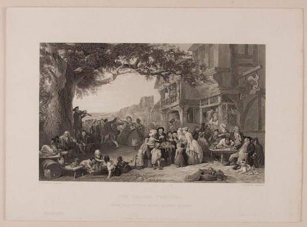 Curator: Auguste Raffet, a name perhaps less sung than some, yet his spirit dances vividly in this piece, simply titled "The Ball." Editor: It feels like a snapshot of communal joy, yet there's something unsettling in the density, almost as if the figures are pressed together by societal forces. Curator: The genius of Raffet, I think, lies in capturing those frictions. It’s not just a ball; it’s a gathering pregnant with social implications, with power dynamics barely concealed beneath the revelry. Editor: Absolutely. Who gets to participate, who’s on the periphery – these are silent but potent questions the image evokes. The blurred background suggests an indifference to individual stories. Curator: It's like a memory, fragmented and impressionistic, hinting at narratives we can only imagine. There’s a universal quality, a whisper of shared human experience. Editor: And that whisper can turn into a shout when we consider the exclusion inherent in these spaces. Who is missing? Whose stories remain untold even in this apparent celebration? Curator: Perhaps it’s that tension, between inclusion and exclusion, memory and oblivion, that makes this seemingly simple scene resonate so deeply. Editor: Indeed. It reminds us to question not just what we see, but who gets to be seen and how power shapes those visions.
