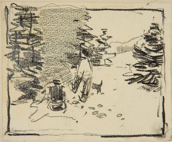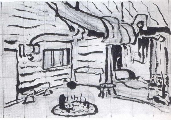 Theodor Severin Kittelsen made this ink drawing, Skolehuset, using paper and ink. The marks are quickly applied, and the drawing is immediate. But the subject matter gives us pause: this isn't a grand vista, but a humble hut. It’s built of rough timbers, stacked horizontally. We can imagine the labor that went into felling trees and hewing them into shape, a slow and physically demanding process. Kittelsen was deeply invested in Norwegian folk culture, so this is likely a scene he knew well, a modest rural building in its forested setting. The stark black and white of the drawing underscores the hardscrabble nature of the scene, the labor-intensive work of building and maintaining a home in a remote area. Ultimately, Kittelsen's choice of subject and his direct, unembellished style elevate the everyday, reminding us of the dignity inherent in simple living.