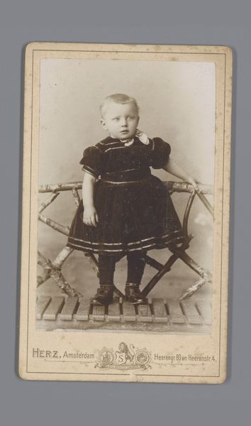 Walter Damry captured this portrait of an unknown boy with photography during his career between 1833 and 1890. The sepia tones and composition immediately evoke a sense of nostalgia. The young boy, seated on an ornate chair, is positioned centrally, creating a balanced, almost symmetrical structure. The textures are particularly striking—from the intricate lace collar to the polished wooden chair and patterned carpet—each element is rendered with meticulous detail. What interests me most is how this image challenges fixed meanings of childhood. Traditionally, portraits of children were idealized, presenting them as innocent. Here, however, the boy’s somewhat melancholic expression disrupts that expectation. The composition suggests more than just a simple documentation; it's a carefully constructed image that uses visual elements to question established notions of youth and representation. Consider how Damry's strategic use of light and shadow influences our perception of the boy, adding depth and complexity. Ultimately, this portrait invites us to reflect on the cultural codes embedded within photographic representation.