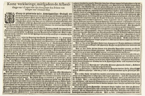 Editor: This print, titled "Pamphlet on the Cruelty of the English Against the Dutch," dates back to 1652 and is the work of Monogrammist PJVB. It looks like an early example of political propaganda! The calligraphy style seems so precise. What do you see when you look at this piece? Curator: It pulls you in, doesn't it? The density of the text, the sharp contrast of the engraving. For me, this isn't just a historical document; it’s a raw scream across centuries. Can you imagine holding this, newly printed, smelling of ink, fueled by the rage of the time? It was a powder keg in textual form. Look closer. Notice the graphic quality contrasting images. Editor: So, beyond just the text and anger, you see artistry? I guess I’m so caught up in the words, I overlooked the craft! Curator: Absolutely! It’s a brutal dance between information and emotion, a carefully orchestrated piece meant to incite. But do you think this level of craftsmanship could undermine its urgency, maybe appear "too polished?" What do you think? Editor: I think you’re right, maybe its detail elevates it… But also it makes me think this wasn’t some fringe idea. It seems almost officially sanctioned due to the artistic effort! I hadn't considered that. Curator: Exactly. Now consider the artist: they chose to put just a monogram, their creation both hiding, and highlighting their name, this pamphlet became personal. Art makes no sense until it means everything. Editor: That’s true, the care and craft create urgency. I now understand that this pamphlet as more than words - It's fury and defiance put in expert artistic expression. Thanks for offering that new lens.