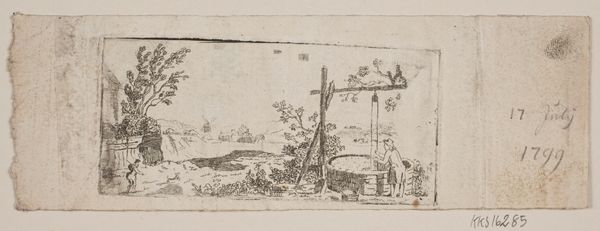 Augustin Hirschvogel created this miniature landscape using etching, a printmaking process that democratized image production in the 16th century. Unlike engraving, which demands immense pressure to incise lines directly into a metal plate, etching involves drawing through a wax coating, then bathing the plate in acid. This eats away at the exposed metal, creating the lines that will hold ink. The result, as we see here, is a finely detailed image, reproducible on a relatively large scale. Hirschvogel’s delicate lines capture the textures of foliage, water, and distant mountains with remarkable economy. The etching process allowed artists like him to distribute their vision of the world widely, contributing to a growing market for art among a broader public. Consider the labor involved: from preparing the plate to making the print. This wasn't just art, it was a cottage industry, part of the burgeoning capitalist economy. Appreciating this print involves understanding not only its aesthetic qualities but also its place within a new system of production and consumption.