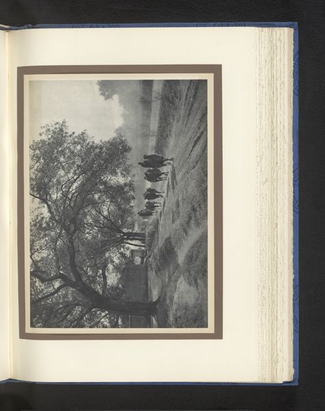 Editor: So here we have Donald Mennie’s “Poort te Peking”, a gelatin-silver print from before 1920. There’s something about the light here, framing figures passing through this gate. I wonder, what grabs you most when you look at this image? Curator: Ah, Mennie. It feels like a stolen glance, doesn't it? Like we’re not meant to be privy to this intimate moment in bustling Peking. That archway… it’s a threshold, a portal through time, really. I’m thinking of old film reels, documentaries, those ghosts we see flitting through history. The donkey, so loaded down, almost mirroring the weight of history itself. What does it make *you* feel? Editor: I agree, that contrast is very powerful! It’s also making me consider my perspective; as a Western viewer, there is definitely some orientalism going on in my reading of it, particularly the sort of anonymous presentation of the subjects. Is that fair? Curator: That’s a very important question! I'd argue the composition pulls us away from some kind of inherent othering and towards a more empathetic read; think of that archway framing everything. A window through time is a bridge. Even the technical choices—the hazy background, the subdued tones—add to the feeling of intimacy and introspection. I find myself thinking of Atget capturing the soul of old Paris. There's this gentle melancholy... almost dreamlike, isn’t it? Editor: Yes, I see what you mean. I am now seeing past that more generic vision of "old China" I initially perceived! Curator: It invites us to look closer, to feel something of that history ourselves. Thank you for taking a look, I loved discovering something new about this artwork with you.