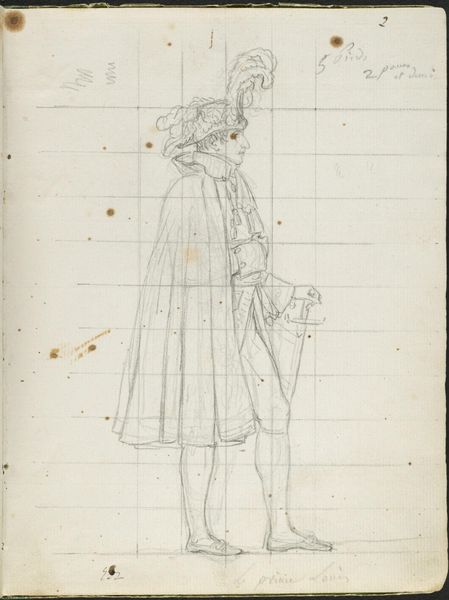 Editor: Here we have Jacques-Louis David’s sketch of Prince Joseph Napoleon. It feels like a study, perhaps preparatory. What can you tell us about the role of imagery and the politics surrounding such a portrait? Curator: Well, consider David's position as a key figure in revolutionary and Napoleonic art. This sketch, likely for a grander portrait, reveals the mechanics of power. The grid suggests careful planning. How does the sketch serve to legitimize Joseph Napoleon's rule amidst political upheaval? Editor: I hadn’t thought about it that way – the grid makes it seem very calculated, a tool of power. Thanks! Curator: Indeed, it reveals how images can be deliberately constructed to shape public perception and reinforce authority.