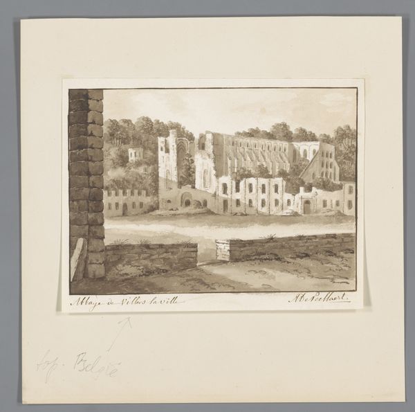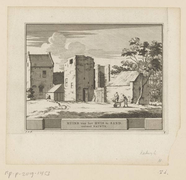 Editor: So this print, “Zicht op de ruïnes van het antieke theater in Arles” by Borel et Grué, created around 1832-1833, captures the ruins with incredible detail using engraving. The muted tones and crumbling architecture give off this somber, reflective feeling. What do you make of this scene? Curator: It's a fascinating piece, particularly because it positions us to consider the layers of history being presented. What does it mean to depict ruins at this particular historical moment, the 1830s? The interest in classical ruins coincided with a rising sense of nationalism, using antiquity to construct a national identity. The artist invites the viewer to reflect not just on Roman history, but also France's place in relation to this past. Editor: So it’s not just about showing an old building? Curator: Exactly. This is an engraving, intended for wide distribution. What does it mean to make this ruin accessible to the public through print? It allows a broad audience to contemplate the past, and implicitly, France's contemporary cultural achievements in relation to this past. The very act of documenting and circulating this image becomes a form of cultural appropriation, re-contextualizing the Roman theater within a 19th-century French narrative. Consider the lone figure within the scene; does she observe the ruins, or do the ruins stand as silent testament to France? Editor: That’s a really interesting point. I was just seeing a pretty picture but you have placed it within history and cultural dialogue. Now the role of art is clear to me and what's the message of it all. Curator: I think it shows that even seemingly straightforward landscape depictions engage in complex cultural and political work. Thank you for pointing me towards that thought!