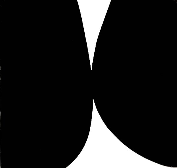 Here we see Gerwald Rockenschaub’s shapes rendered, I would guess, with computer software. It’s not about mark-making in the traditional sense but more about form-making. These graphic shapes bumping up against each other in a flat plane make me think of something floating in space, but it could also be read as a schematic diagram. It's all about placement, this careful arrangement of a muted palette; the balance of the black background with the soft pink circle is so considered. The colour palette is very easy on the eye, that baby pink really softens the impact of the other cooler shades. I think about the hard-edged geometry of Mondrian here, but the softness of the colours are more in line with Ellsworth Kelly's engagement with shape and colour, like a softer take on Modernism. The dialogue continues.