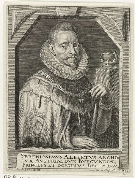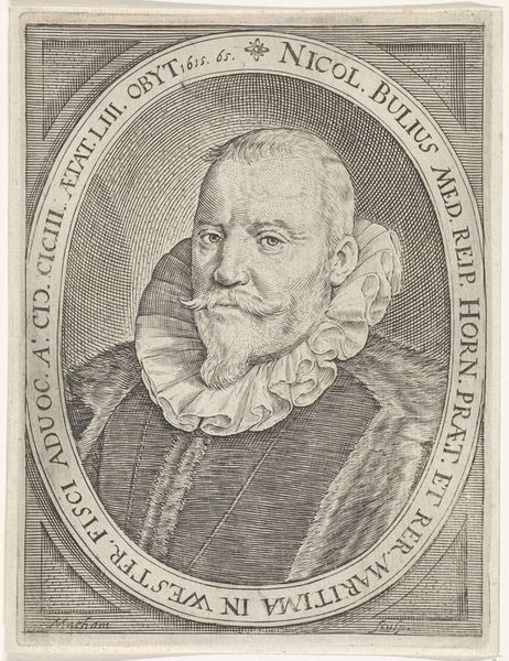 Jacob Matham's engraving captures Paulus Merula, a prominent figure in the Dutch Republic, within an oval frame. The engraving embodies the cultural and intellectual fervor of the Dutch Golden Age, a time marked by significant achievements in art, science, and trade. Merula’s identity as a professor and historian is highlighted by the inscriptions surrounding his portrait, which situates him within the scholarly elite of his time. Merula’s attire, with its fur-lined coat and elaborate ruff, speaks to his social standing and the era's emphasis on status through dress. Consider the weight of societal expectations and the pressure to perform one's role with utmost diligence and decorum. Matham’s engraving is more than a mere depiction; it's a study in how identity is constructed and conveyed through the visual language of the 17th century. The detailed rendering and formal composition create a lasting image of a man who embodied the intellectual and cultural values of his age.