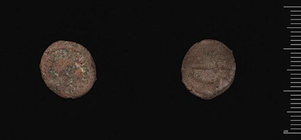 Curator: Here we see a small, bronze coin, possibly minted in Alexandria and attributed to Crispus. Editor: It looks like time itself is imprinted on this little disc. It’s so worn, almost like a memory fading at the edges. Curator: The details have indeed been softened by age. What we can still discern are the remnants of what was likely a portrait of Crispus on one side. Editor: Interesting. And on the other, some indistinct markings, perhaps indicating value or origin? It's amazing to think of all the hands this passed through. Curator: Precisely. Coins serve not only as currency but also as historical markers, telling us much about the economy and the politics of the time. Editor: This one feels so intimate, though, more like a talisman worn smooth with worry or hope. A reminder that even the grandest empires are built on tiny transactions. Curator: Yes, indeed. This humble piece offers a tangible link to the past, inviting us to contemplate the vast, interconnected narratives of history. Editor: It certainly prompts one to consider how the smallest objects can hold the biggest stories.