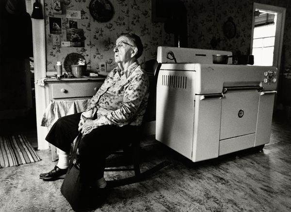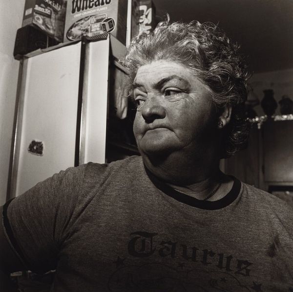 Larry Fink made this photograph, Jean Sabatine, Christmas, Martins Creek, Pennsylvania, at an unknown date. You know, it's funny how black and white can sometimes feel like the realest thing. Look at the way the light catches on Jean’s face, highlighting every line and curve, while the dense, patterned wallpaper threatens to swallow her whole. The surface is incredibly rich, and grainy – it’s a visceral texture that reminds me of old movies and forgotten family albums. It's not just a picture, it's a record of a moment, of a life lived. See how the black of her dress spills out into the black of the sofa next to her, making the subject almost blend into her surroundings. This is the moment where it becomes clear to me that photography is also about the embrace of ambiguity. You never really know the whole story, do you? Think of Diane Arbus and her portraits of everyday people, finding the extraordinary in the ordinary, but with a touch of humor.