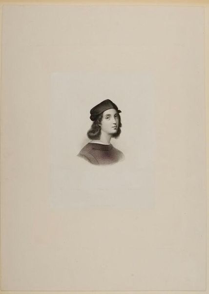 Curator: This is Luigi Calamatta’s "Masaccio." Editor: It's a rather somber portrait, isn't it? Quite minimal. Curator: Calamatta, working in the 19th century, engaged with earlier Renaissance masters. It is interesting to see him choosing Masaccio as his subject. The paper itself communicates something of an academic exercise. Editor: Agreed. The choice of a drawing rather than a painting points toward a focus on line and form, skills vital to the broader project of artistic production and academic study. Curator: Indeed. And how these types of drawings circulated and were consumed also played a role in the public understanding of art. Editor: Right, it shifts our perspective from singular genius to the network of artistic labor.