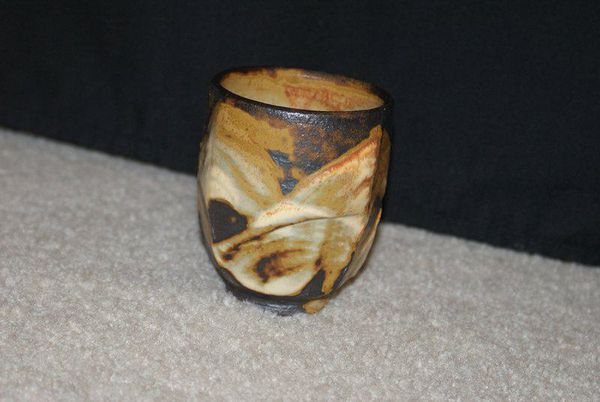Hori Ichirō made this sake cup, or guinomi, at an unknown date using clay and glaze. What strikes me first about this piece is its surface. It's not smooth or uniform but has this rugged, almost geological quality, like looking at a miniature landscape. The glaze pools and gathers in different areas, creating a topography of textures and hues. I get the sense that the artist is allowing the materials to have a conversation, to push and pull against each other in the firing process. And that’s how I like to think about art making: as a conversation. It’s a back-and-forth between the artist's intentions and the unpredictable nature of the materials. I think of Lucie Rie and her experimental glaze techniques or even the rough and ready ceramics of Peter Voulkos. It’s like art is embracing happy accidents and unexpected outcomes, finding beauty in imperfection.