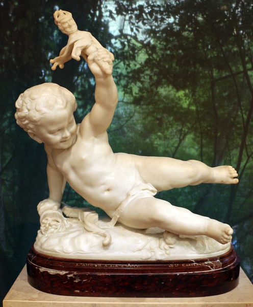 This porcelain sculpture, "Child with Grapes," was crafted by the Real Fabrica de Buen Retiro. Here, a plump child clutches grapes, symbols of plenty and transformation. The grape motif carries echoes of Dionysus, the god of wine, ecstasy, and fertility, whose festivals involved ecstatic rituals of transformation. The bacchantes, female followers of Dionysus, are often depicted crowned with grape vines and leaves in a state of ecstatic frenzy. We see this motif resurface in Christian art, where grapes signify the blood of Christ and spiritual nourishment. This symbol evolves, finding new life and meaning across different eras. Consider the complex emotions evoked by this seemingly simple scene. Through the ages, the symbol of the grape has served as a powerful force, engaging viewers on a deep, subconscious level. A potent reminder of life, death, and rebirth that persists to this day.