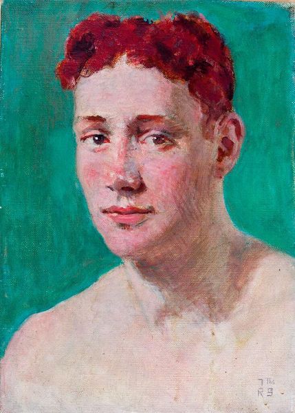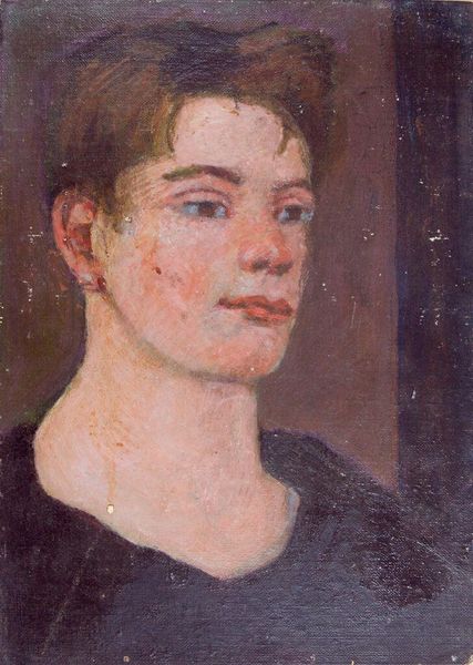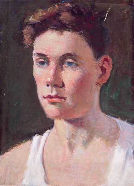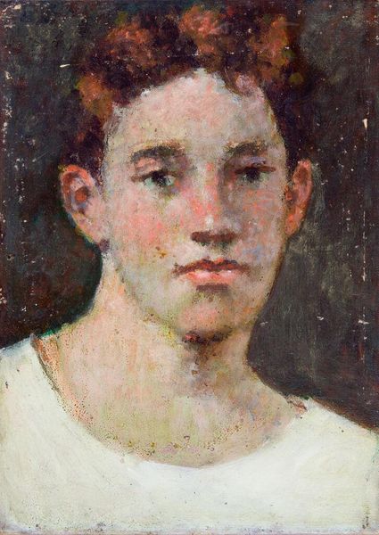Editor: This is "Portrait of a Young Man" by Denman Waldo Ross. It's an oil painting, roughly 14 by 10 inches. The subject's expression is quite melancholic. What stands out to you about this piece? Curator: The sitter’s ambiguous gaze speaks volumes. What identity is being performed here, and for whom? Ross was deeply invested in aesthetic theory, and the choice to depict this young man, absent explicit markers of class or profession, invites us to consider the male gaze and the constructed nature of identity. Editor: So, you're suggesting the painting challenges conventional portraiture by questioning identity? Curator: Precisely. It prompts us to consider how power, representation, and visibility intersect. What did you take away from our discussion? Editor: I see now how the painting is more than just a portrait; it’s a commentary on the social constructs that define us.
