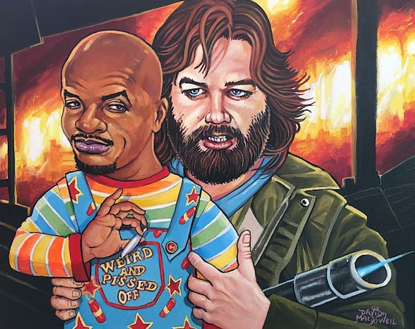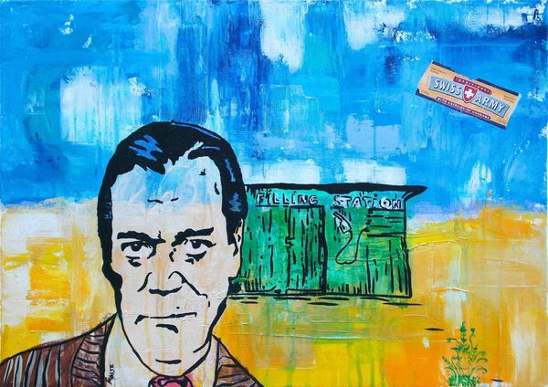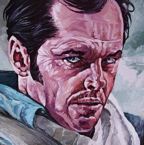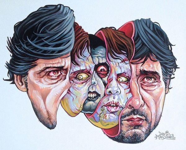 Dave Macdowell made this painting, "Miseryland," sometime in the 20th century, conjuring a portrait with an unsettling edge. The mark-making here is all about building up layers, a process that reveals more than just the image itself. You can really feel the texture, especially in the face, where pinks and purples clash to create this almost cartoonish effect, and the whole thing is rendered with a tangible, almost palpable quality. The way Macdowell handles the paint—thick in places, thin in others—it feels like a psychological landscape. Look at the eyes, the way they seem to bore into you. There’s this sense of discomfort, a kind of raw vulnerability, laid bare. There is something of Peter Saul in this piece. Like Saul, Macdowell isn't afraid to push boundaries, to embrace the grotesque and the absurd. And I think that's where the power of this painting lies, in its willingness to confront the darker aspects of the human experience.