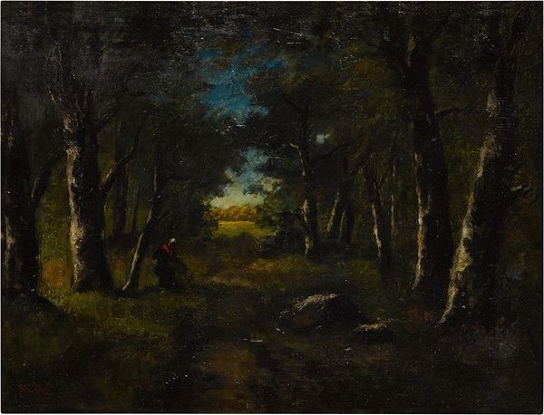 George Inness created "Sunset in the Woods" as an oil on canvas, where viewers are immediately drawn into the interplay of light and shadow within a dense forest. The verticality of the trees is striking, yet the warmth of the setting sun softens the scene. Inness masterfully uses light to define form and create depth, and this is where the painting begins to speak of something more profound. Inness was deeply influenced by the philosophical ideas of his time, particularly the search for the spiritual in the natural world. Note how light and shadow become symbolic elements. The light, rather than merely illuminating, seems to suggest a deeper, transcendental presence. The shadows, equally important, invite contemplation on the unseen and unknown. Consider how Inness transforms the natural landscape into a semiotic space, where trees, light, and shadow are not merely representations but signs loaded with cultural and philosophical meaning.