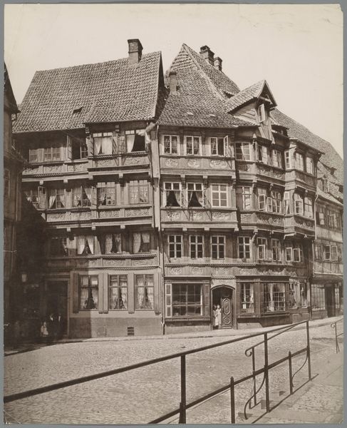 This sepia photograph of a street in Hildesheim, Germany, was taken by E. Mertens & Cie, a company active in the late 19th and early 20th centuries. The image captures the intricate details of the traditional half-timbered houses, with their decorative carvings and closely packed structures. Hildesheim, a town with a rich medieval history, was a significant center of trade and culture, reflected in its architecture. Such buildings showcased not just craftsmanship but also the economic status and social identity of their owners. The presence of shops on the ground floor indicates the commercial life of the city. Photographs like these served multiple purposes. While tourism increased, such images were instrumental in documenting urban spaces before modern transformations. They reflect a cultural interest in preserving and celebrating local heritage. Understanding this photograph requires us to consider the social and economic forces shaping urban life. Historical archives and local records can further reveal the stories behind these buildings and the people who inhabited them.