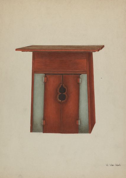 Martin Partyka made this drawing of a Hartford Chest, sometime between 1855 and 1995, using pencil and watercolor. The process here is all about precision, delineating every line, contour, and edge of the cabinet. Look at how Partyka captures the wood grain with short parallel lines. The texture feels smooth, almost polished, not rough at all. The subtle use of red highlights gives the chest a kind of warmth and liveliness, like a flushed face. The lines are so clear and controlled. But you can tell it’s a drawing, not a photograph, because there’s a slight looseness. It reminds me of the work of Agnes Martin, where simple grids and soft colors become deeply meditative. But here, instead of abstraction, it's a careful observation of a real thing. Ultimately, Partyka invites us to see the beauty in the everyday and the extraordinary in the ordinary.