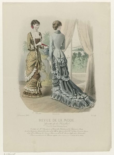 This fashion plate, created by A. Chaillot in 1880, displays two elegant dresses, capturing the styles of the late 19th century. The dress on the right features a prominent bow at the waist, a motif laden with historical significance. The bow, seemingly a simple adornment, echoes across centuries. In the Renaissance, similar knots symbolized alliances and familial bonds in portraits. Consider, though, how its meaning shifts. From emblems of commitment, these bows transition to symbols of haute couture, adorning the fashionable elite and expressing individual style rather than societal roles. This evolution is not linear but cyclical. The bow, whether tying a knot between people or cinching a waist, consistently evokes themes of connection, beauty, and aspiration. In this context, it serves as a powerful visual cue, engaging the viewer on a subconscious level by evoking feelings of longing for beauty, status, and belonging. Through such enduring motifs, we perceive the profound impact of cultural memory on our perceptions. Symbols resurface and evolve, demonstrating the non-linear progression of cultural transmission.