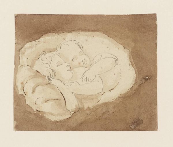 Editor: This is "To Barnehoveder," which I understand translates to "Two Children's Heads," by Oscar Andersen, likely made between 1848 and 1907. It's a drawing, possibly a print too, just pencil on paper, a small-scale portrait in a realist style. The image makes me think of old family photographs; it’s very intimate. What do you see when you look at it? Curator: The visual vocabulary here – the softness of the pencil, the depiction of children asleep – pulls on something very deep in our cultural memory. Sleep, especially the sleep of infants, has long been symbolically linked with purity, innocence, a return to origins. Andersen’s choice to render this in pencil, a seemingly simple medium, amplifies this feeling, doesn't it? Editor: It does. I also get a sense of vulnerability because they are sleeping. Curator: Precisely! It's a tender but potent image. The use of pencil contributes to its directness. Pencils are of course for preliminary sketches but these feel more formal; what does the visual record of an 'ordinary' child, recorded for posterity suggest to you? Is it about legacy and familial lineage? Editor: I hadn’t considered that aspect before, but you're right. The way they’re rendered does elevate them. Maybe it speaks to how every parent views their child, regardless of social status, like each is extraordinary. Curator: An intriguing interpretation! Consider, too, that sleep can also represent a kind of unknowing. The children are at rest, but we, the viewers, are awake, looking at them. There is that sense of mystery – we're watching over them but also excluded from their world. How can an ordinary pencil sketch offer such depth, connecting individual, personal experience with wider cultural narratives? Editor: It's incredible how such a simple medium, used with this kind of sensitivity, carries such emotional weight. I definitely see so much more in this piece now. Thank you. Curator: My pleasure, thinking about imagery in a long span of time allows for us to connect to history in potent ways!