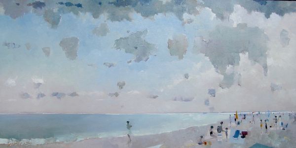 Winslow Homer made this watercolor painting of Natural Bridge, Bermuda, and it's all about how he used the medium: fluid, transparent washes that somehow give a great sense of solidity. I'm drawn to the rocks in the foreground. Homer’s captured their rugged texture with these short, choppy strokes, like he's jabbing at the paper with his brush. There’s this small pool of turquoise water nestled among the rocks, echoing the larger expanse of the ocean. It's a beautiful moment of reflection and connection. The red blobs are intriguing against the blues and grays of the scene. They pull the eye in and animate the otherwise tranquil scene. Homer’s handling of watercolor reminds me of John Singer Sargent, another master of the medium. Both artists shared a love for capturing light and atmosphere with incredible economy. With its balance of precision and spontaneity, Homer’s "Natural Bridge, Bermuda" invites us to appreciate the beauty and complexity of the natural world.