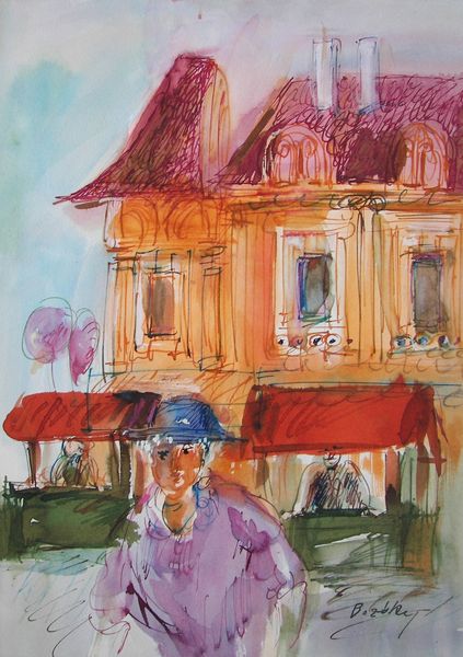 Maria Bozoky made this watercolour painting, Fruit Market in Prague, and the way she's layered the colours, especially those scribbled lines, well, it's like she's thinking right in front of us. There's this dance between the wet washes and the scratchy pen work. See how the colours pool and bleed into each other, but then she comes in with these decisive, almost frantic lines? That tension is everything. Look at the figure in the foreground, how the red and blue of the coat seem to melt together, but then there's that scrawled beard, like a burst of energy. It's raw, immediate, and kinda beautiful. Bozoky reminds me of those early expressionists, like Kirchner, who weren't afraid to let the messiness of life seep into their work. It's not about perfection, it's about feeling.