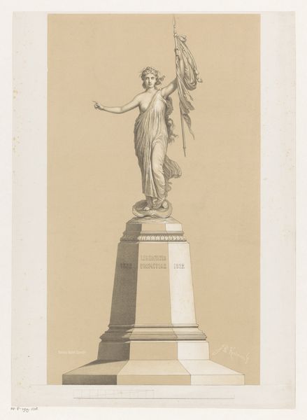 This is Johannes Wilhelmus Franciscus Offenberg's 1873 Model for the monument Alcmaria Victrix. It appears to be made of plaster, a common material for preparatory models due to its ease of manipulation. Plaster allows for a direct, hands-on approach, enabling Offenberg to quickly realize his vision. The statue depicts a winged figure standing on a pedestal, likely representing victory or freedom. The choice of plaster, while practical, also carries a social dimension. It stands in contrast to the more prestigious materials like bronze or marble typically used for finished monuments. The texture, weight, and form of the plaster contribute to a sense of immediacy and accessibility, as if the artist's hand is still present in the work. Offenberg's model engages with the traditions of classical sculpture, but the use of plaster democratizes the artistic process. It invites us to consider the labor and skill involved in creating public monuments, and challenges the conventional hierarchies between fine art and craft.