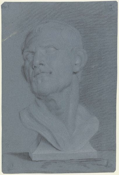 Jan de Bisschop made this portrait bust of Emperor Galba in the 17th century using pen and brown ink, a relatively simple method of production. De Bisschop employed hatching and cross-hatching techniques to construct form and volume, using linear strokes to build up darker areas and suggest the play of light on the Emperor's face and drapery. The material influences the appearance, with the ink allowing for fine lines and tonal gradations that capture the texture and weight of the marble sculpture. The controlled application of ink allows for a high level of detail, imbuing the artwork with a sense of realism and depth. The choice of ink as a medium reflects a connection to a tradition of drawing and printmaking, where the artist skillfully manipulated the ink to create a visually compelling representation. This piece blurs the lines between drawing, printmaking, and sculpture, as de Bisschop engaged with historical creative practices, underscoring the importance of materials and making in understanding the artwork's full meaning.