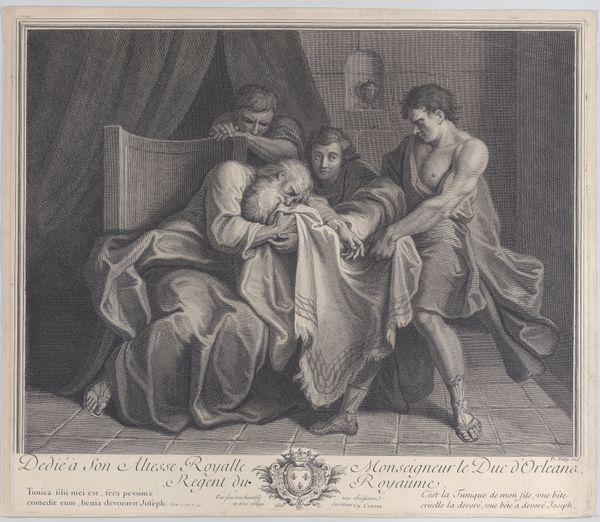 Crispijn van de Passe II created this engraving, "Cinyras valt zijn dochter Myrrha aan," its intricate lines and contrasting shades of gray immediately draw us into a scene of intense conflict. The composition is stark. The figures of Cinyras and Myrrha dominate the foreground, their struggle unfolding with dramatic tension. Van de Passe employs line to define form and texture, etching the scene with a precision that captures the emotional weight of the narrative. Notice how the sharp, angular lines of Cinyras's cloak and sword contrast with the softer, more flowing lines of Myrrha's drapery. This contrast underscores the power dynamics at play. The use of light and shadow enhances the drama, casting dark shadows that amplify the sense of danger and despair. The background is rendered with meticulous detail, creating a sense of depth and space. The work destabilizes moral categories, prompting us to question the boundaries of human behavior. It is through this formal interplay that Van de Passe invites us to reflect on the complexities of human nature and the enduring power of myth.