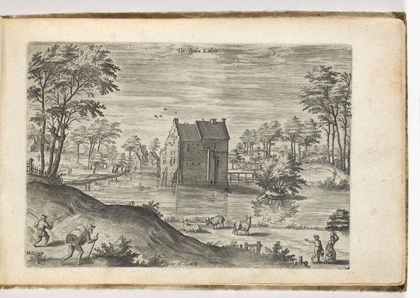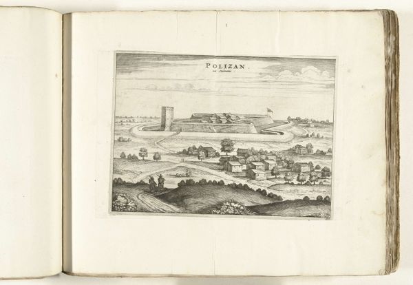 Editor: This is an engraving, “Gezicht op Islan in Dalmatië,” dating from around 1702. It’s by an anonymous artist, currently held at the Rijksmuseum. The image shows this fortified structure overlooking what seems like quite desolate landscape, rendered in a meticulous Baroque style. It makes me feel quite small and insignificant. What really stands out to you? Curator: Desolate is a striking choice, a word pregnant with feeling. What whispers that to you? Is it the solitary figures near the overgrown tree in the foreground, or the castle standing aloof? To me, this isn't just a picture. It's a meditation on perspective. Consider how the landscape swells to embrace the fortress. Isn’t it romantic in a way, to distill place down to line and shadow, hinting at both grandeur and the quiet melancholy of time. I'm fascinated by the meticulous detail alongside an overarching simplicity. Editor: I see what you mean. Maybe "desolate" was too strong, but it definitely feels... distant, or detached? I am noticing more now how the lines feel both very precise, but also…almost dreamy. How did they achieve that balance? Curator: Ah, the magic! Engraving allows for these beautiful, unwavering lines that simultaneously define and liberate the form. Think about it— each one, etched with intention, contributing to this broader dance of light and form. They built a world, bit by tiny bit. The precision gives the image its stability and the detail invites you to enter this space of quiet grandeur and contemplate transience. What do you feel now? Editor: It definitely feels like a world I want to visit. It also helps to realize the labor and technique involved here, not just in capturing a scene, but creating a distinct atmosphere. It's given me so much to think about. Thank you! Curator: And thank you for your perspectives. Sometimes we all just need a guide for a mental vacation.