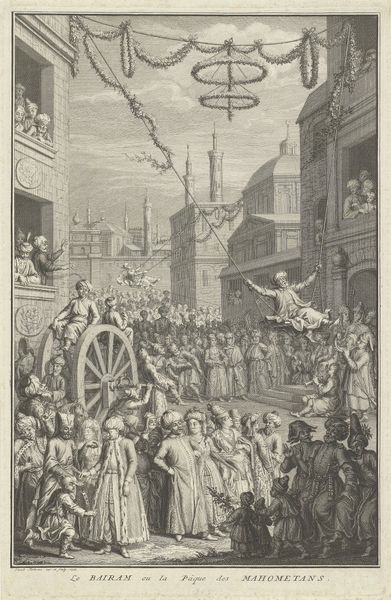 Jan Lamsvelt's "Processie," made with etching, captures a religious procession, likely in the Netherlands during the late 17th or early 18th century. This detailed print offers insights into the social and religious life of the time. The procession, with its clergy, musicians, and faithful followers, was a public display of faith and community solidarity. Visually, the image presents a hierarchy, from the elevated clergy to the kneeling supplicants. The architecture in the background, reminiscent of grand civic or religious buildings, reinforces the institutional power of the church. The historical context is key: The Netherlands, while known for its religious tolerance, still had a dominant Reformed Protestant culture. Catholic processions like this would have been a visual assertion of their presence. Understanding this work requires delving into the religious history of the Netherlands, examining archival records of religious practices, and analyzing the political dynamics between different religious groups. Art like this serves as a visual document of its time, revealing the complex interplay of faith, power, and social identity.