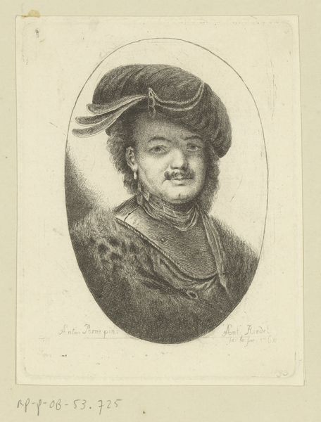Curator: The somber intensity of this rendering immediately strikes me. Editor: Indeed. This print, "Rembrandt," by Carl Ernst Christoph Hess, made after a painting, captures a certain gravitas. Curator: Hess, working in the late 18th and early 19th centuries, is channeling Rembrandt, invoking the master's profound understanding of human psychology and emotion through pose and expression. Editor: And the materiality of the printmaking process itself—the lines etched into the metal, the pressure of the press—adds a layer of remove, a mediation of Rembrandt's original vision. There's an inherent labor involved that speaks to its own historical context. Curator: Precisely. It's a cultural echo, a memory of Rembrandt's genius filtered through Hess's own artistic sensibilities. Editor: A fascinating dialogue between artists, across time, expressed through labor and materials. Curator: The cultural weight of Rembrandt continues to resonate centuries later. Editor: A print that speaks volumes about artmaking itself.
