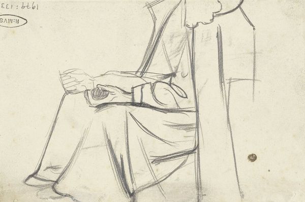 Editor: So, this is "Woman," a pencil drawing by Paul César Helleu from around 1895. There's something really intimate about the pose, almost voyeuristic. What strikes you most about it? Curator: It's interesting you say voyeuristic. Considering Helleu's social circle – Marcel Proust, John Singer Sargent – this drawing fits into a broader context of representing fashionable women of the Belle Époque. It is a construction of femininity that served a very specific public function. What do you see of her status or position within that societal structure reflected here? Editor: Well, the elaborate dress and hat suggest a certain level of wealth, definitely not someone working class. But it also feels like a glimpse behind the curtain, seeing her in a private moment even though she is elegantly posed. Is it also saying something about how women, even wealthy ones, were viewed? Curator: Precisely! Think about the Impressionists and their fascination with modern life. Helleu is part of that, but with a specific focus on capturing the grace and allure of women, often within a carefully curated social frame. Was she observed in reality, or just on canvas? It subtly reinforces their roles as objects of beauty and admiration, shaping the public’s perception of women. And do you notice that most of Helleu’s sitters belonged to a tight network that he occupied, not straying far beyond his immediate milieu. Editor: I hadn't really considered the shaping of perceptions, just saw it as an interesting drawing. It really changes how you look at it knowing how constructed this "private" moment is for public consumption. Curator: It’s a reminder that even seemingly candid depictions are often products of their time, shaped by the social and cultural forces at play. Considering how this work circulated and to whom allows us to view it within that historical and political context. Editor: Right. Thinking about that makes the work much richer and way more complex. Thanks!